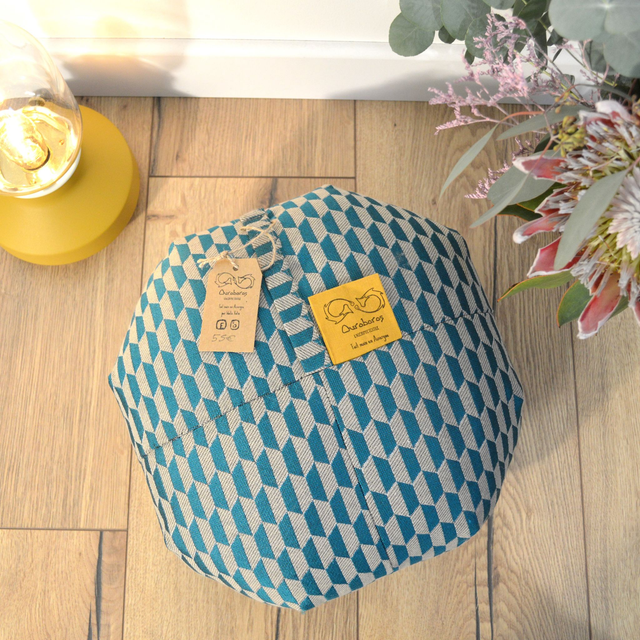 Coussin de méditation octogonale moyennement ferme, rembourré avec du kapok, matière naturel.