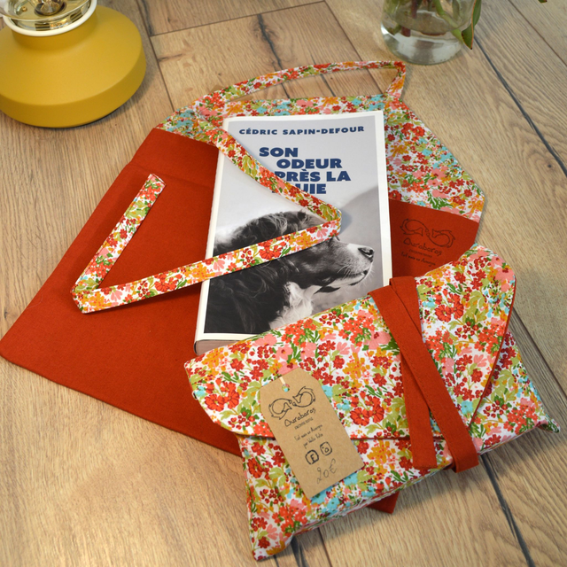 Protège livre en coton de format médium, idéal pour transporter son livre du moment partout avec soit sans s'inquiéter de l'abimer. Largeur 28cm hauteur fermer 19cm. Système de fermeture par lien et pan de fermeture asymétrique.